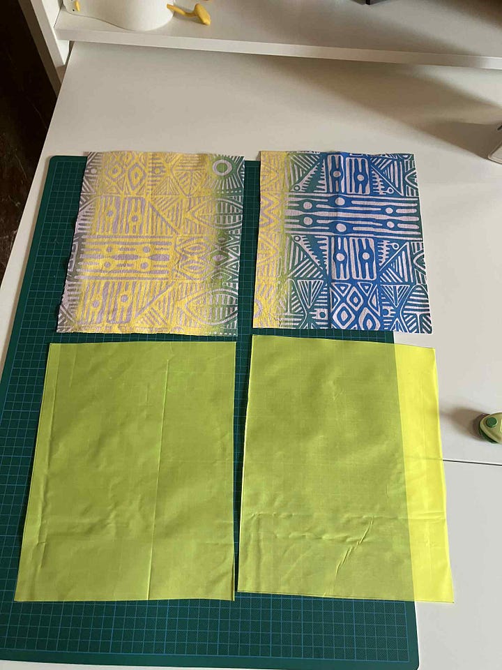 By now you should end up with two long pieces of fabric, each consisting of one outside fabric and one lining sewn together.